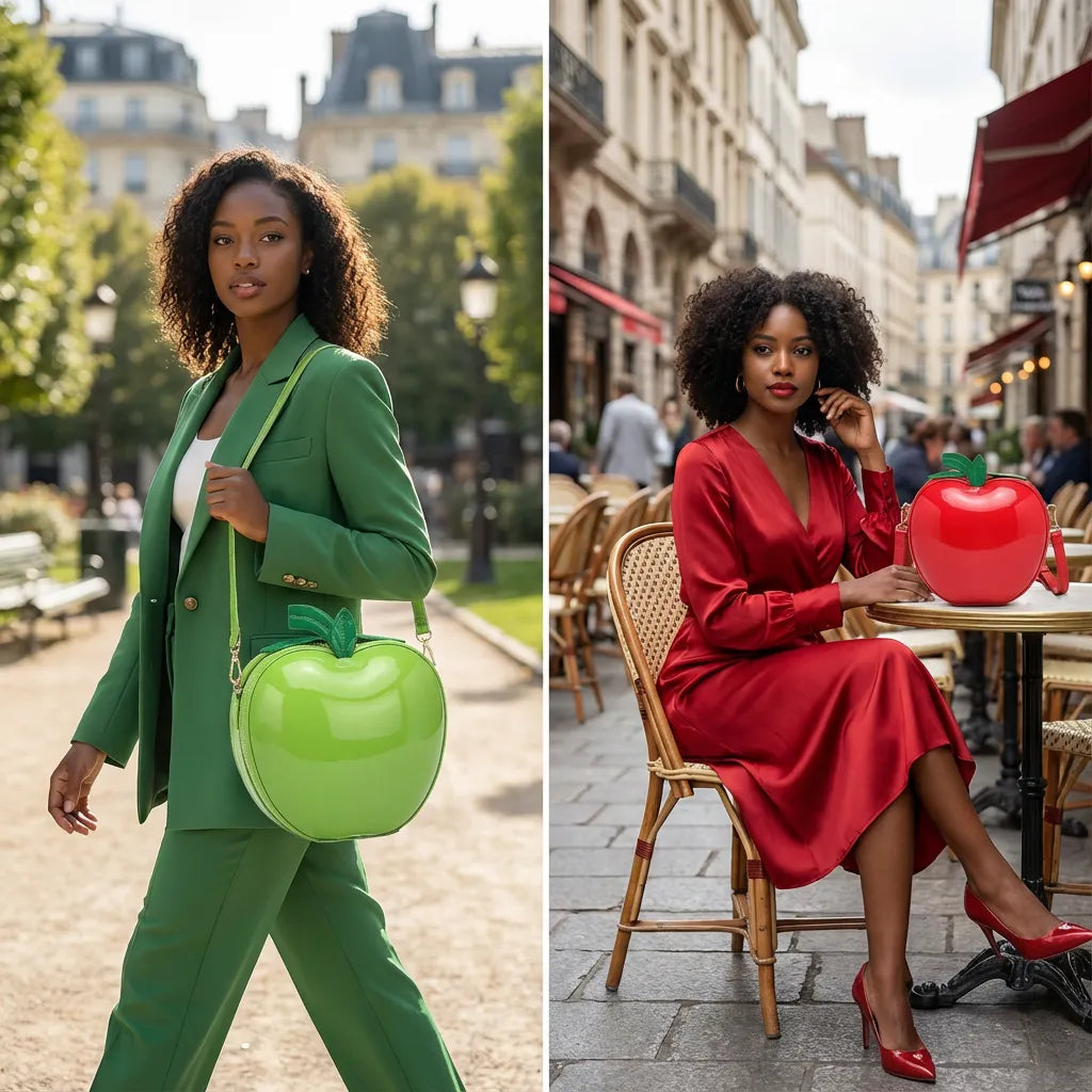 A playful yet sophisticated mini handbag inspired by the iconic apple silhouette. The high-gloss finish, sculpted curves, and compact structure create a visually striking piece that balances fun with fashion — modern, artistic, and effortlessly attention-grabbing.